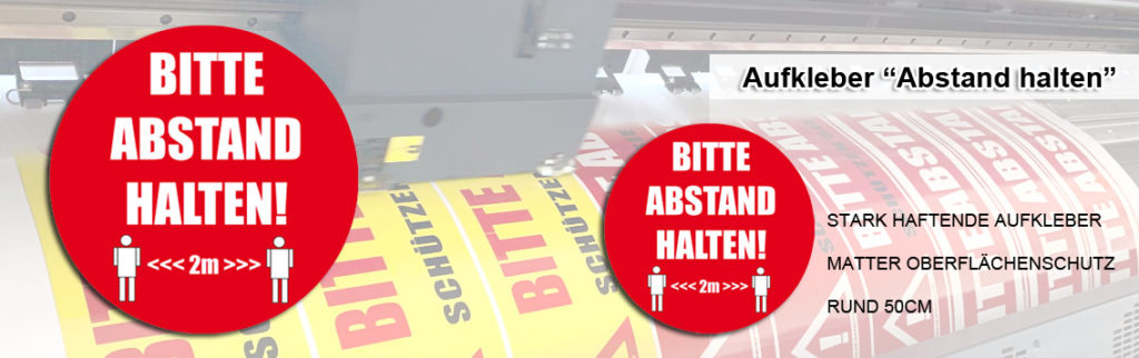 In der Corona-Pandemie-Krise heißt es „Abstand halten“! Wir drucken und fertigen deshalb Bodenaufkleber und andere Hinweisaufkleber sowie Schilder für Geschäfte, öffentliche Einrichtungen, mit denen Kunden in Wartebereichen oder an Kassen zur Einhaltung einer Schutzdistanz aufgefordert werden. Durch die erhöhte Sichtbarkeit und dem klar deklarierten Hinweis erhöht sich der Schutz bzgl. der Abstandshaltung und Ansteckungsgefahr bzw. Verbreitung des Corona-Virus. Nutzen auch Sie den wichtigen Hinweis, der Leben retten kann und eine Ausbreitung des Virus verhindert.
